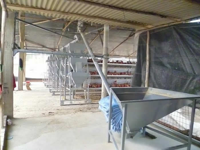 La distribución del alimento se realiza a través de tolvas, mediante un diseño de dosificación de alimentación que permite la distribución uniforme, asegurando que las aves reciban su ración de manera equitativa.
